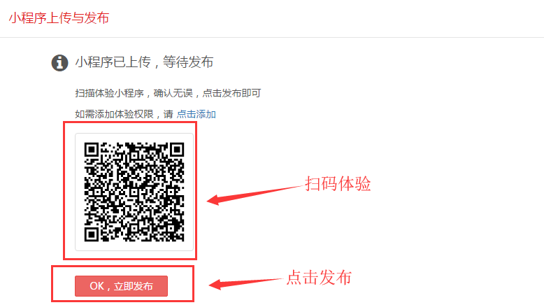第三步,扫码体验无误后,立即发布。然后等待微信审核(预计3个工作日),如果审核通过了,您的小程序就正式发布上线啦。