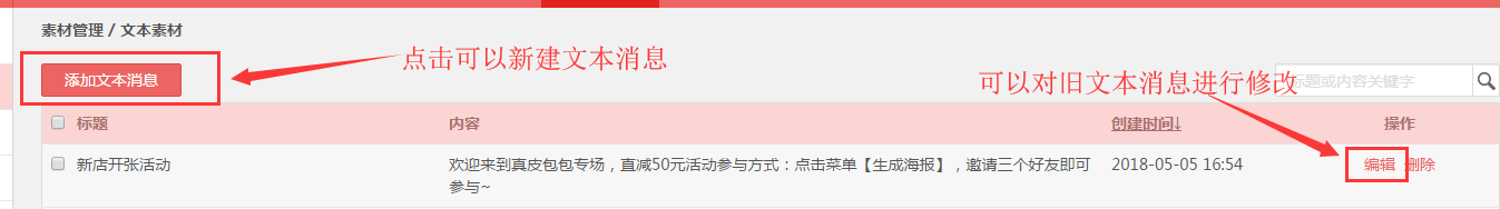 第二步,点击“添加文本消息”可以编辑文本消息(如图二)。该页面也可以对旧的文本消息进行编辑管理。