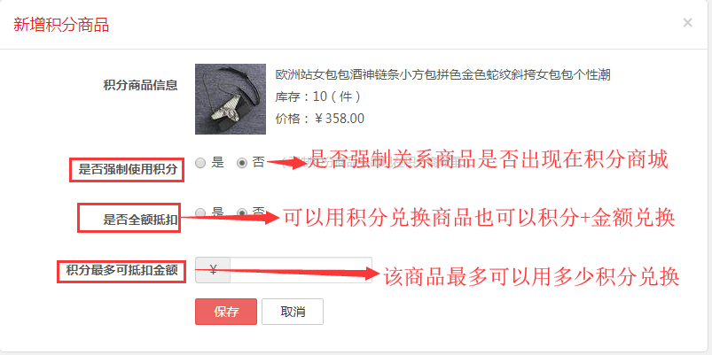 3)积分最多可抵扣金额:针对积分+金额兑换商品,兑换该商品最多需要多少金额,此金额是由积分兑换的。涉及到积分配置:一元=(?)积分 如何设置积分配置
