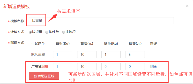 如何设置运费模版(按件按重量/件数/体积)