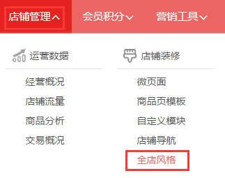 第一步,登入旺豹后台,点击“店铺管理→店铺装修→全店风格”。