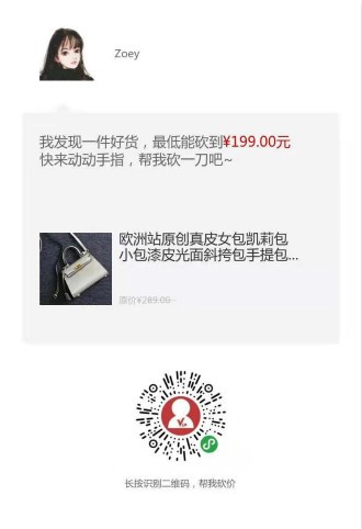 消费者发起砍价后,会定向发给自己比较熟悉的朋友,或他认为对该活动感兴趣的其他消费者,用户主动帮你寻找目标用户,能在用户群体中高效率的传播,获得高质量的用户。