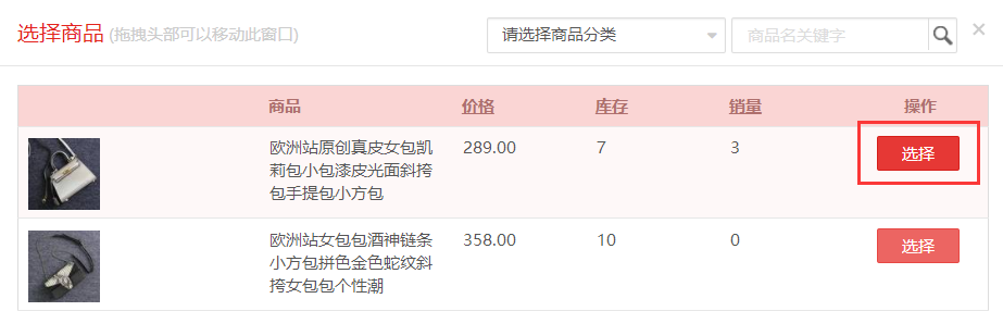 路径:店铺管理→微页面→添加“砍价”组件→添加商品,如图所示: