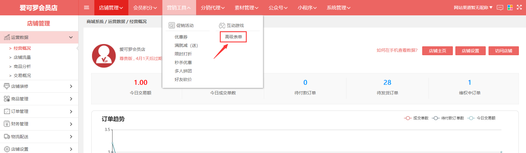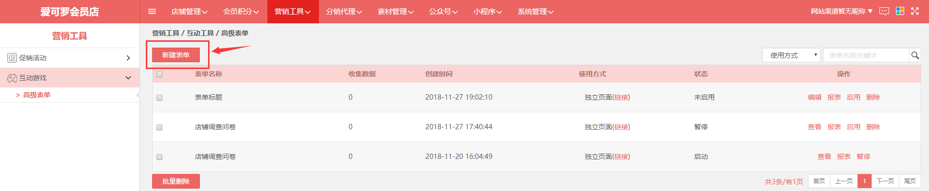 商家可登录店铺后台电脑端→营销工具→互动游戏→高级表单