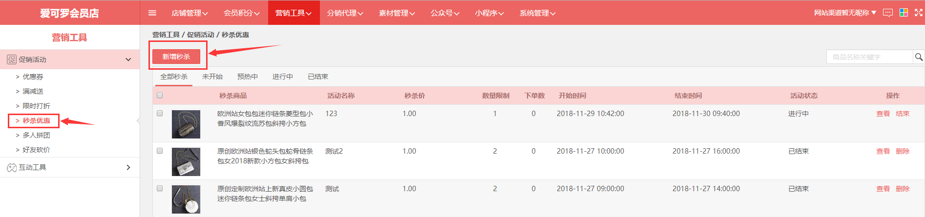 旺豹电脑端后台→营销工具→秒杀优惠。