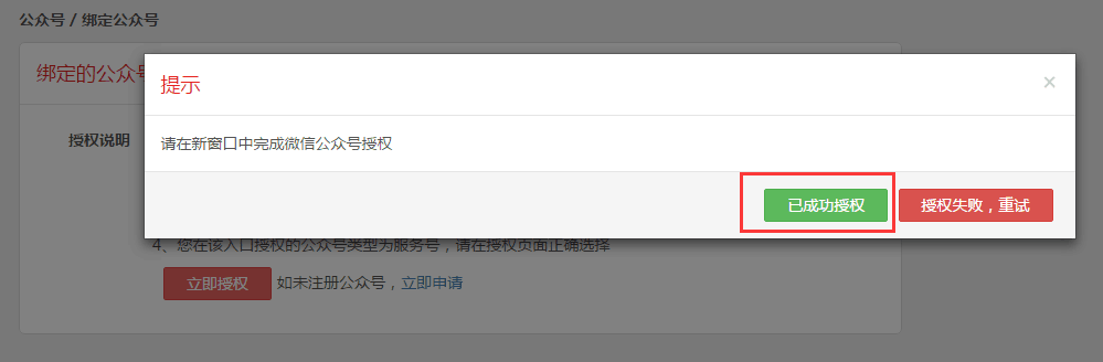 第四步,回到旺豹系统点击“已成功授权”,完成绑定小程序。