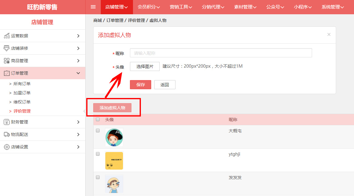 第三步,进入下图的界面,点击“添加虚拟人物”,对虚拟人物进行设置后保存。