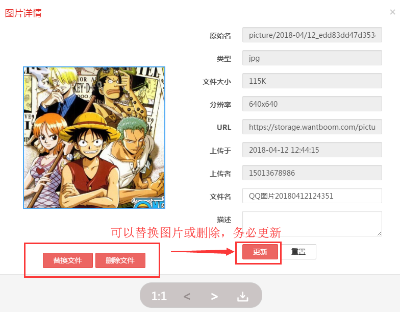 注意:点击图片可以进行替换图片(*所有含有这张图片都会被替换),删除图片(*所有含有这张图片都会被删除)