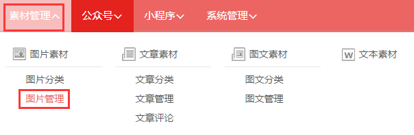 第一步,登入旺豹后台,点击“素材管理→图片管理”。