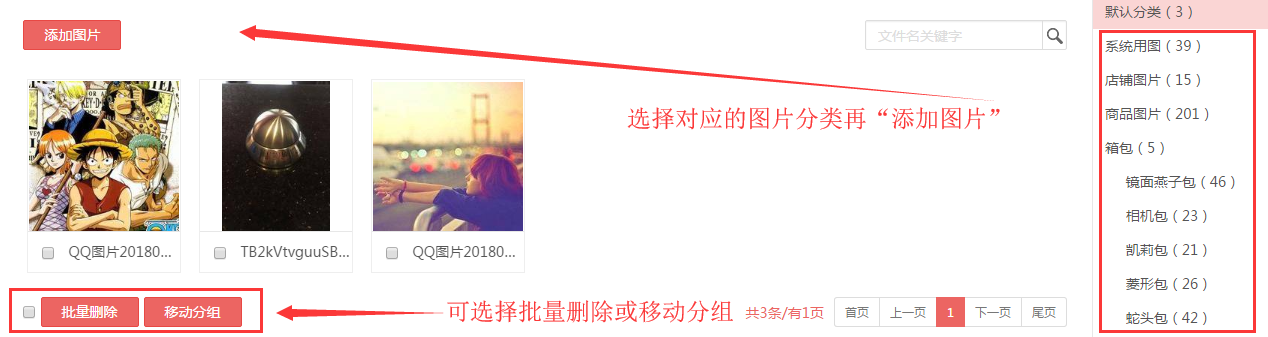 提示:如需对图片进行管理, 请先设置图片分类。以便上传图片的时候可以将图片放入对应的分类。方便管理。