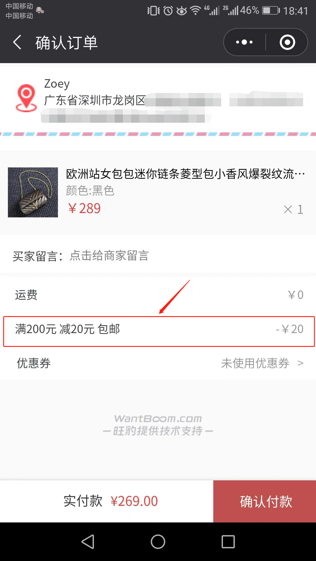 判断订单是否满减送,优惠金额不包含买家支付的运费哦。
