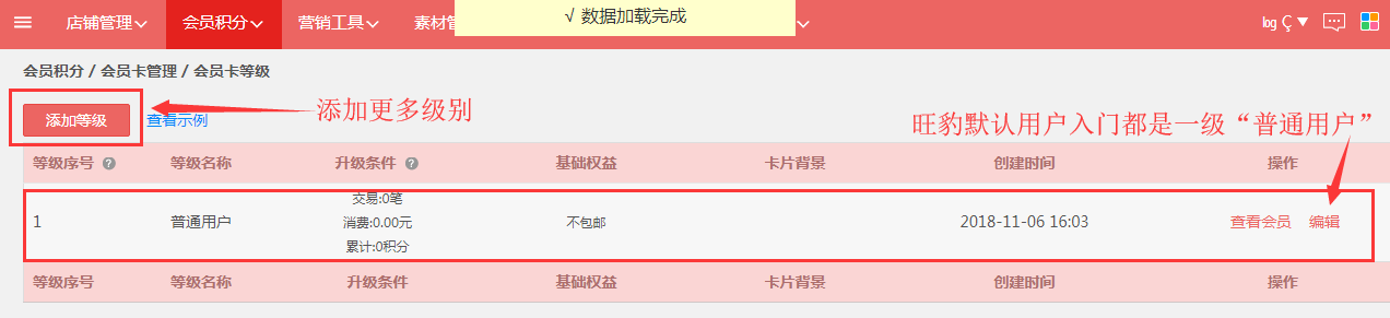 第二步,旺豹默认用户入门就是一级“普通用户”,可以编辑更改也可以继续添加等级。