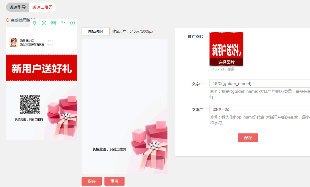 第二步,进入邀请引导页面,根据需求设计邀请页面,点击保存。