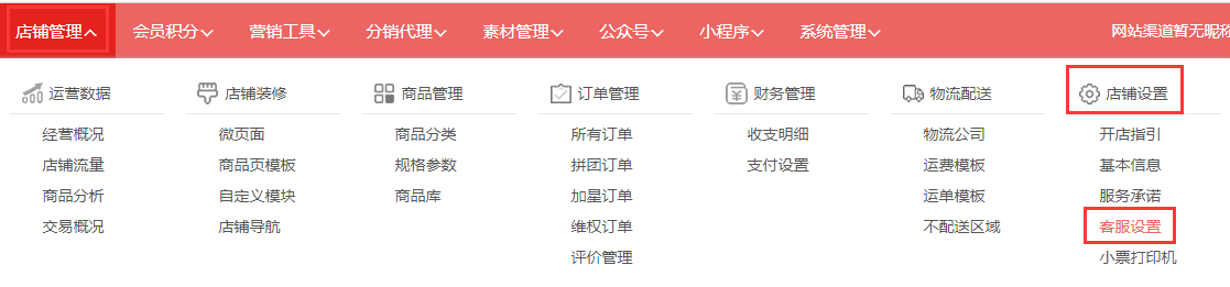 第一步,登入旺豹后台,进入“店铺管理→店铺设置→客服设置”。