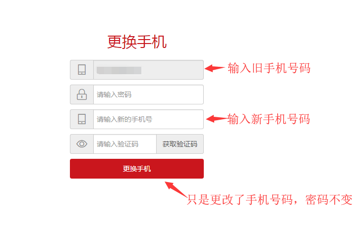 2)更换手机,密码维持不变, 按照提示操作即可。