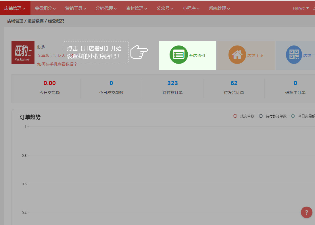 打造操作零障碍旺豹系统,新增【开店指引】,每一步都为你精心设置。