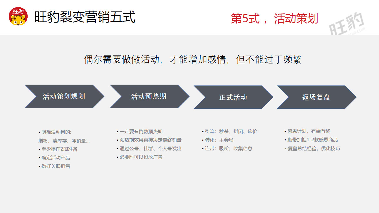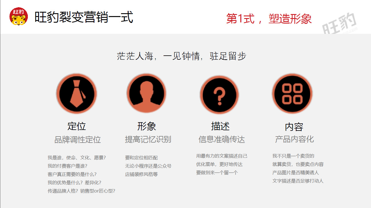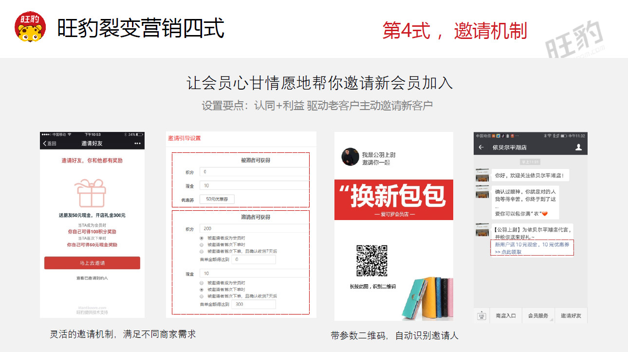 旺豹提供的不仅仅只是一个系统工具,更是一套完整的方法论+具体落地执行方案!就像是给你一把屠龙宝刀,如果你没有九阴真经护体,也无法发挥出最大威力。因此我们针对商家建立小程序后不知如何运营,专门研究了一套“社交电商裂变式营销十八式”,帮助商家建立可自动裂变传播的会员体系,彻底解决运营难的问题。